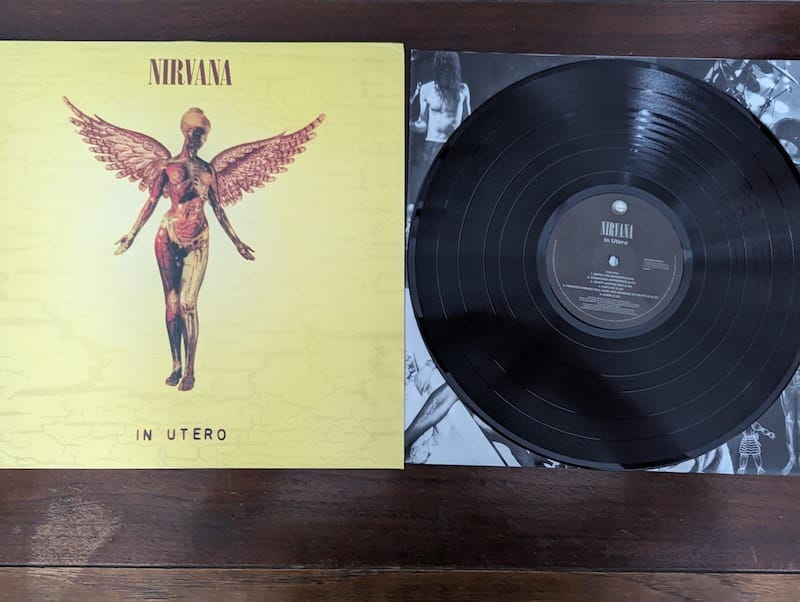 I went a long time without choosing to put on a Nirvana album to then buying all their studio albums plus the Incesticide compilation in the span of about two years. It wasn’t as if a switch was flipped or anything—I saw an inexpensive (new!) copy of Bleach at Deep Groove in Richmond and thought, “you know what? Sure! I don’t have this on vinyl,” and it spiraled from there. But it took the longest for me to finally pick up In Utero, in part because the copy I kept seeing in racks was a little on the pricey side. You shouldn’t have to pay $45 for this record. It’ll almost certainly never be out of print for more than a couple of months at most. And that’s a really big if. You can find it somewhere. Bands like Nirvana don’t end up having their catalogs buried by labels, because people still buy these records. All the time. Hell, I did!